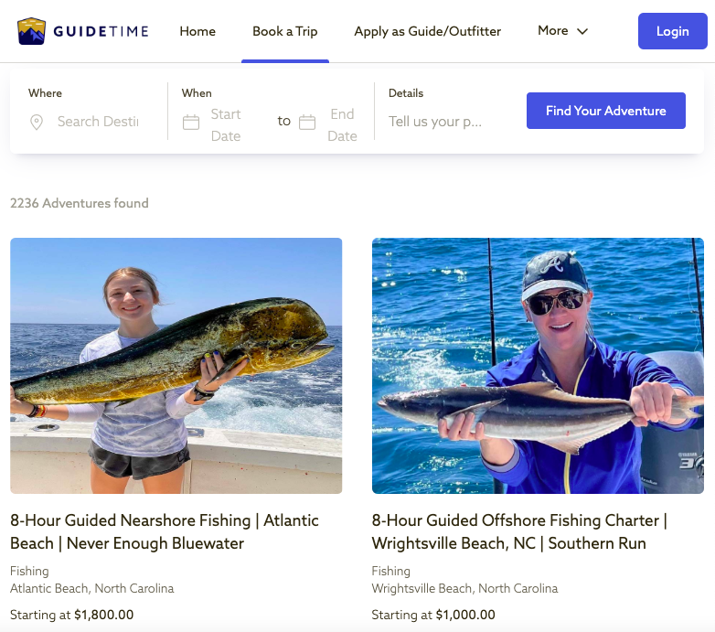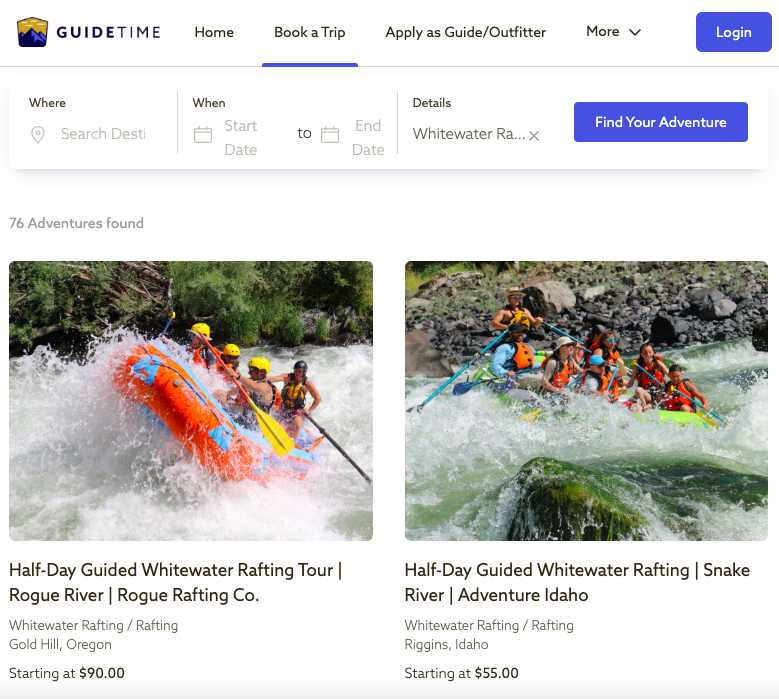 Whether you offer guided fishing, rafting, hunting, hiking, kayaking, biking, or any other guided trips, GuideTime has a community of Outdoor Enthusiasts waiting to find your adventure on our MARKETPLACE.